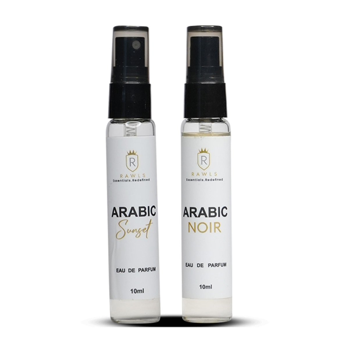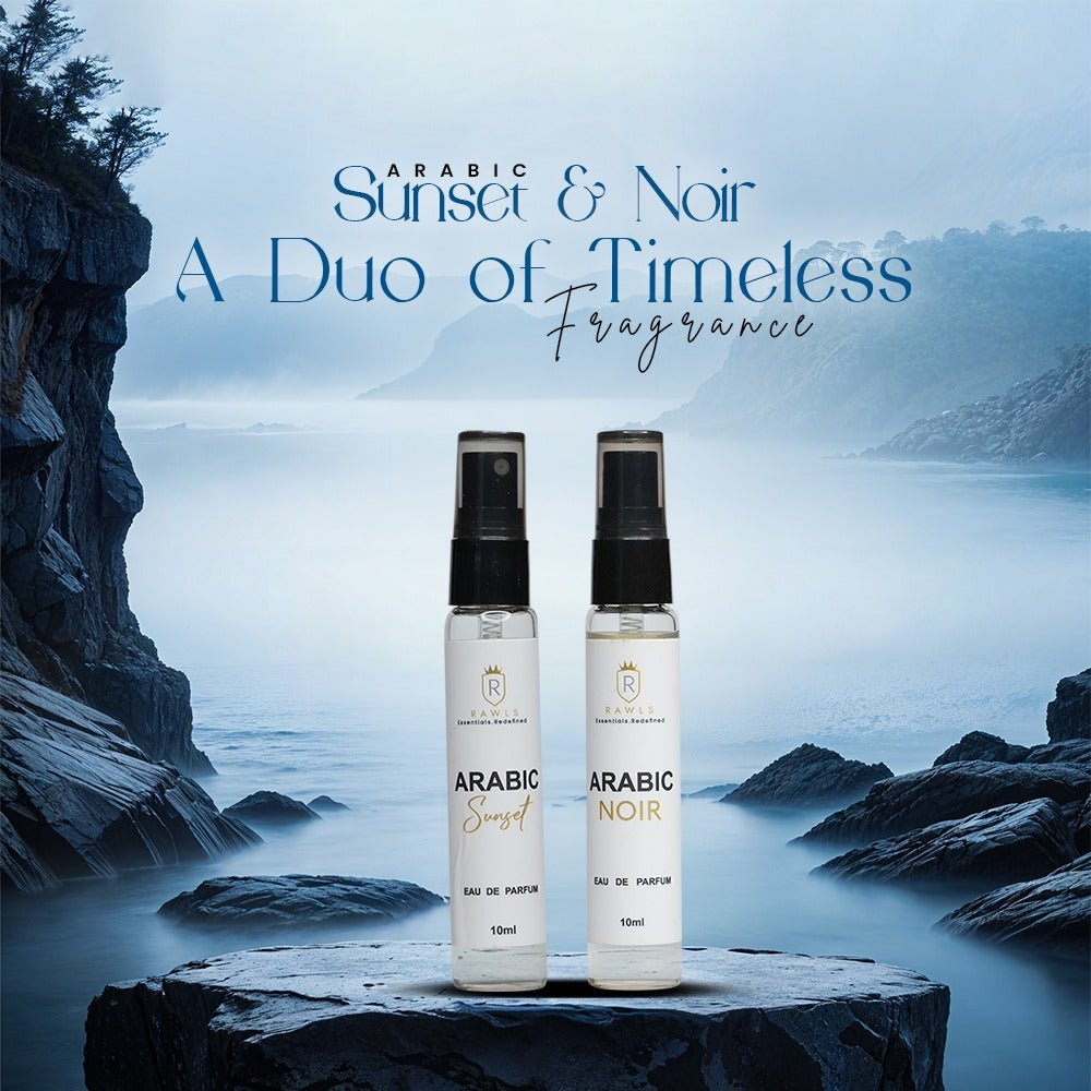 Discover the captivating fragrance of Arabic Sunset & Arabic Noir Eau De Parfum. This perfume is expertly crafted to provide a unique scent for both women and men. With a convenient 10ml bottle, take your favorite scent with you on the go. Indulge in the luxurious aromas and elevate your personal style.